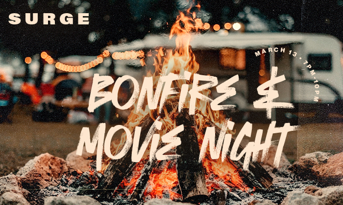 Friday, March 13, 2026 | 7:00–10:00 PM Join SURGE for a cozy night under the stars at our Bonfire & Outdoor Movie Night! Enjoy a relaxing evening filled with warmth, community, laughter, and meaningful connection. We’ll gather around the bonfire, watch a great movie outdoors, and spend quality time with friends—both old and new.